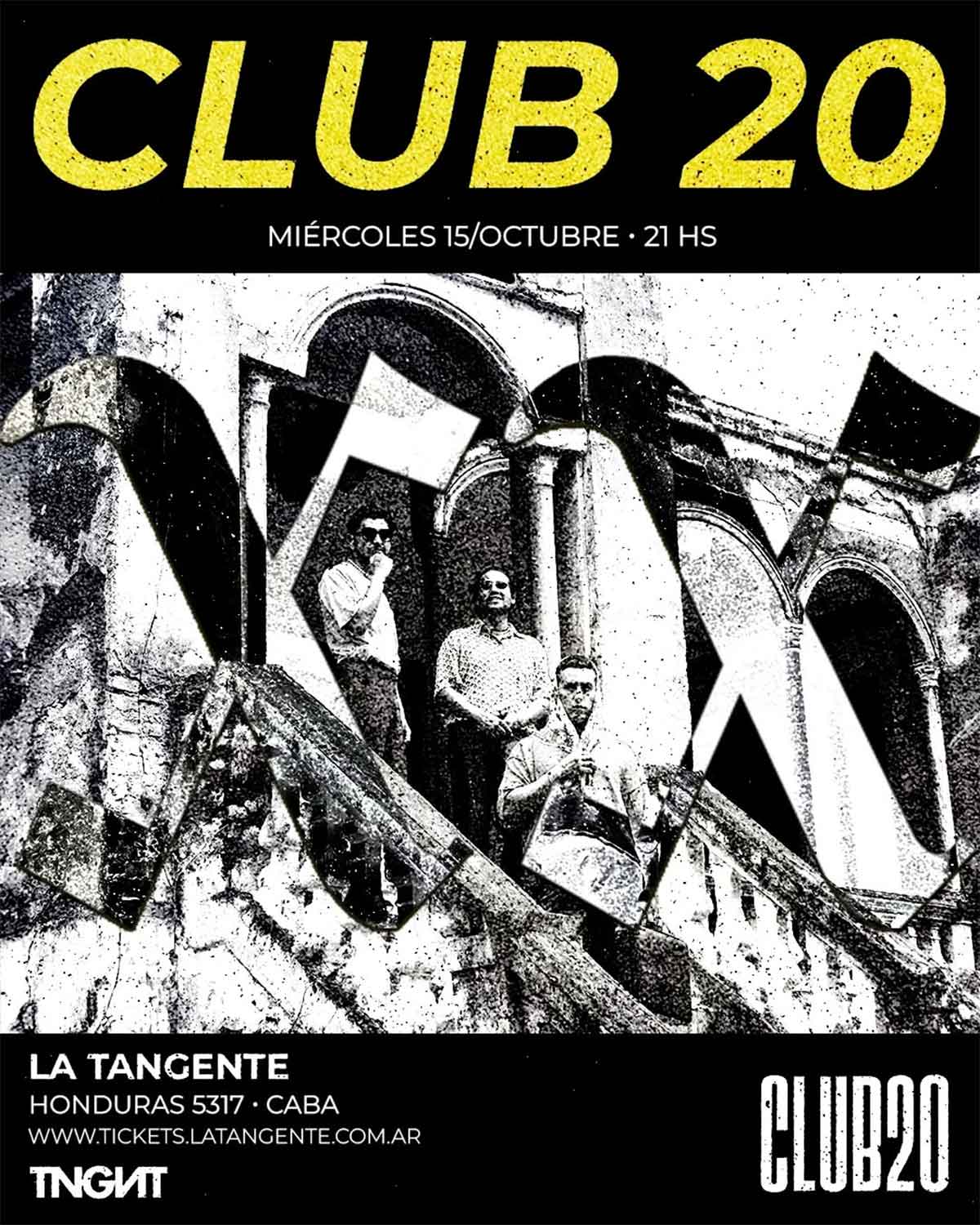 Club 20 se presentará el miércoles 15 de octubre a las 21 h en La Tangente, entradas disponibles a través de la web del lugar.