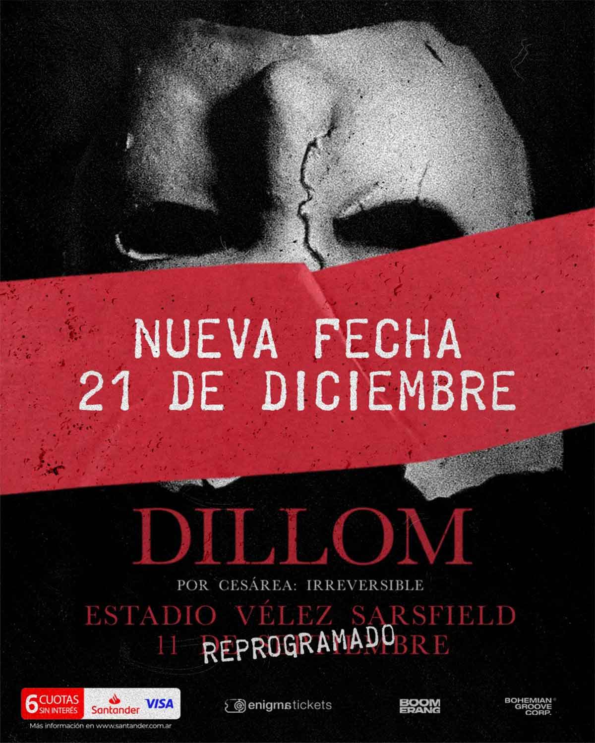 Dillom se presentará el domingo 21 de diciembre a las 21 h en el Estadio Vélez Sarsfield, entradas disponibles a través de Enigma Tickets.