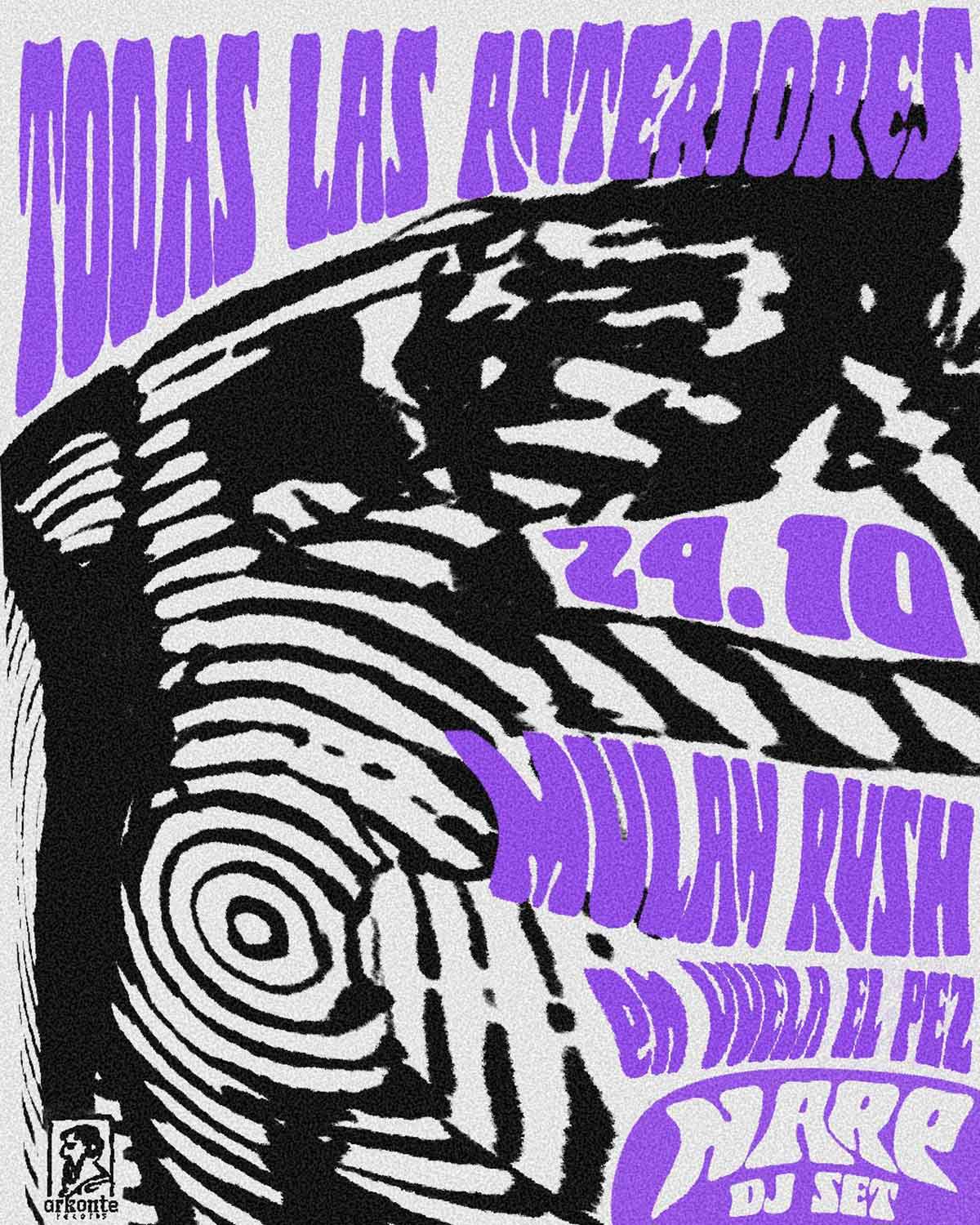 Todas Las Anteriores y Mulán Rush se presentarán el viernes 24 de octubre a las 21 h en Vuela el Pez. Entradas disponibles a través de AlPogo, 2x1 con Comunidad Indie Hoy.